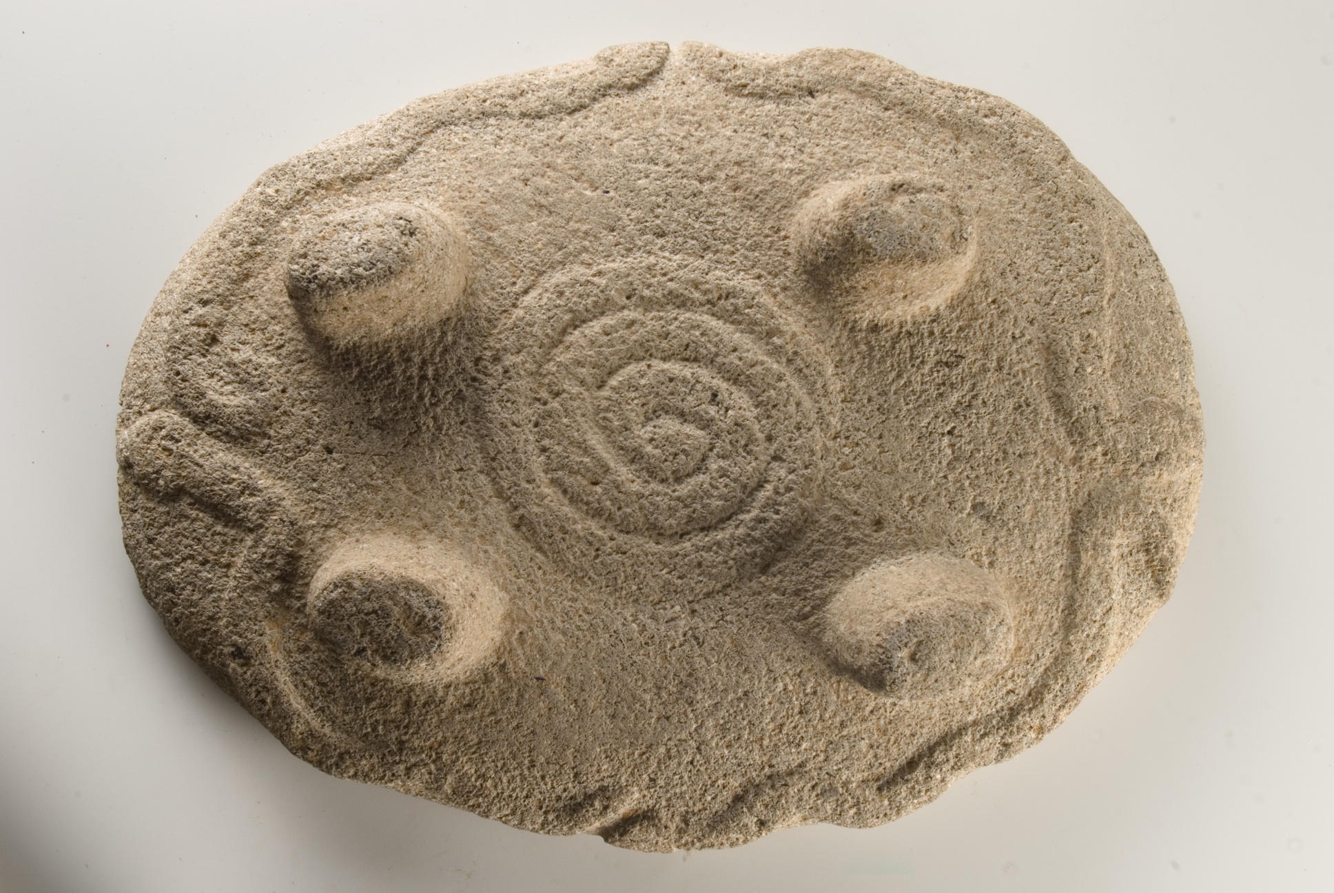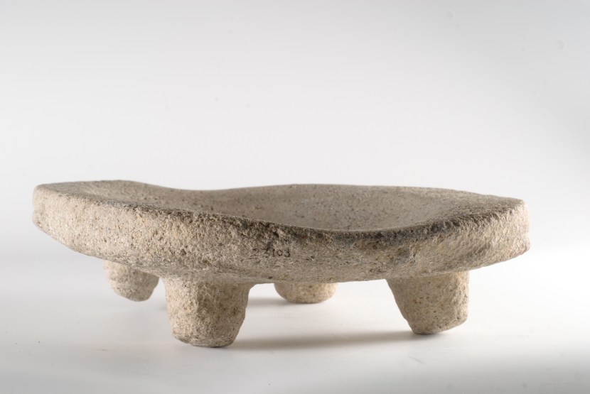 Metate con cuatro soportes procedente del Pacífico Sur. Colección Museo Nacional de Costa Rica. Foto: Diego Matarrita.