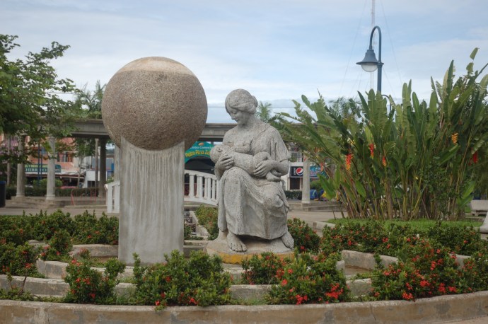 Cada vez que iba de San José a San Isidro o seguía camino hacia el Sur veía en un pequeño parque una escultura un poco extraña. En medio de la plazoleta alguien había colocado una escultura de una madre con su hijo en brazos sobre una esfera de piedra precolombina. Era un ensamble extraño que con el paso de los años se convirtió en símbolo de la ciudad de San Isidro El General.
