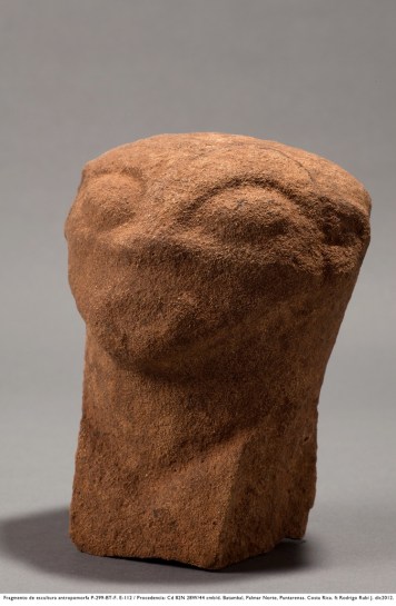 El objeto de la foto es un caso singular que muestra partes de sus distintas biografías. En primer lugar es una escultura fabricada en roca arenisca de grano fino, igual que la mayoría de esculturas antropomorfas del Diquís. Fue hecha en piedra de la región. Su origen está en la materia prima local.